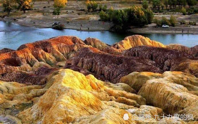 新疆五彩滩,位于新疆布尔津县境内,与哈萨克斯坦隔河相望。这里的地貌奇特,色彩斑斓,被誉为“地球上的调色板”。五彩滩的奇特之处在于,它的岩石在阳光的照射下,会呈现出红、黄、绿、蓝、紫等多种颜色,美得让人惊叹。